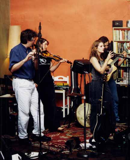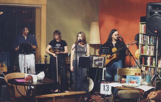 These shots are from our gig at Sullivan Street Book Shop & Coffee House Bistro and include our good friend and guest fiddler, Candace Winship. We bow to her bow!